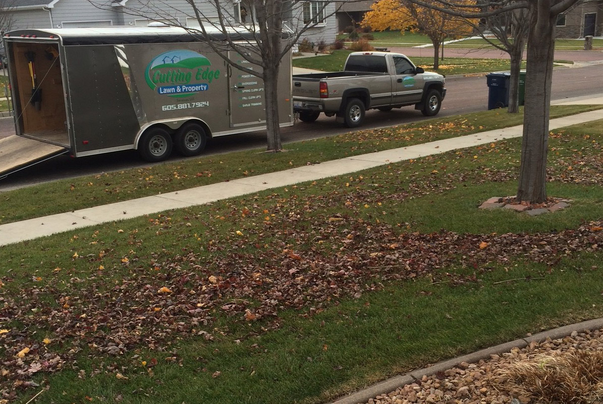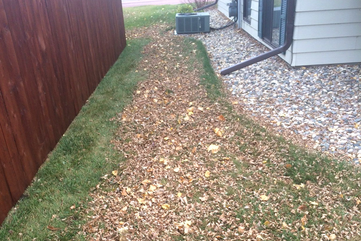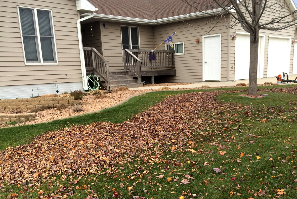 Before picture of leaf removal at a residential home in Watertown, SD