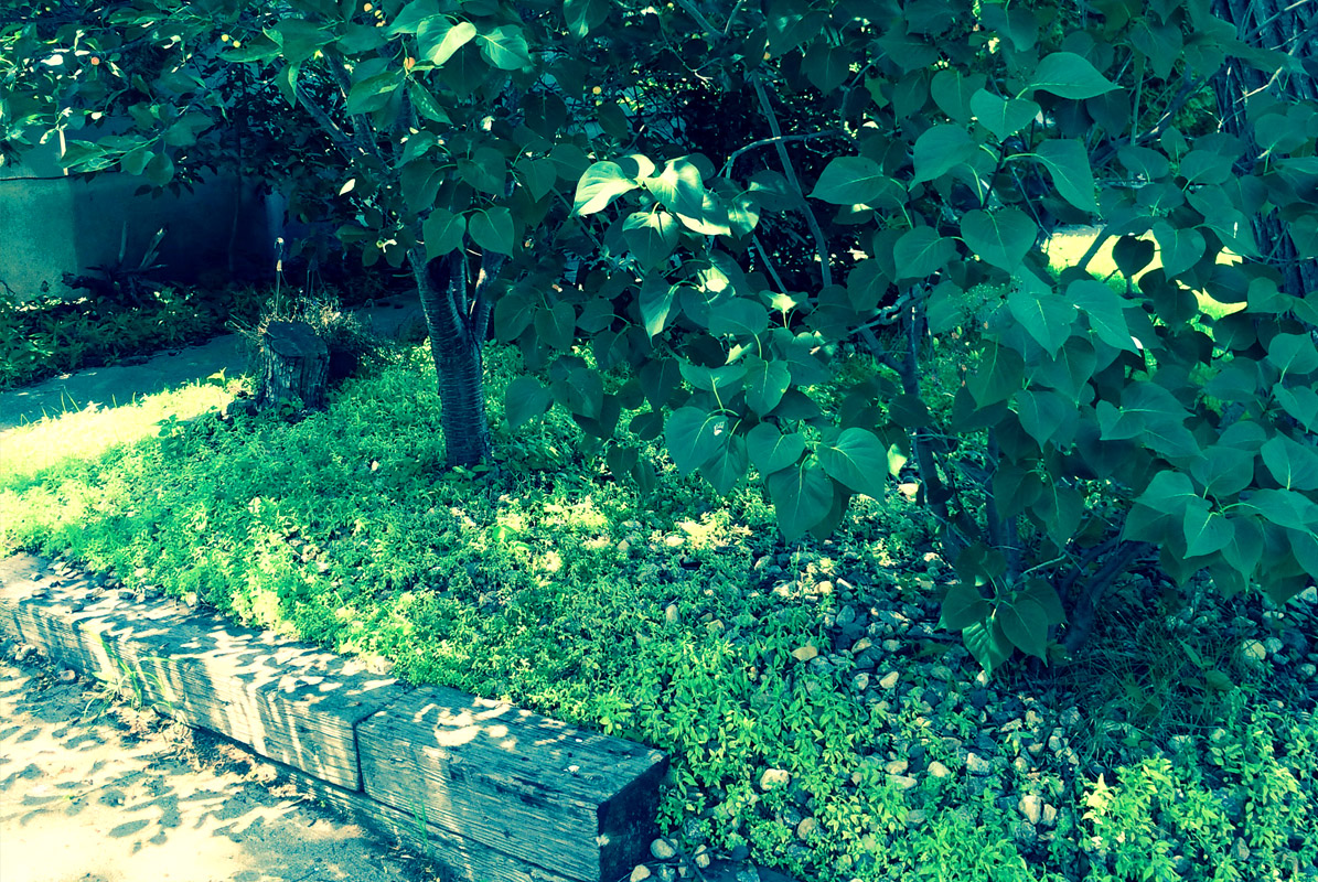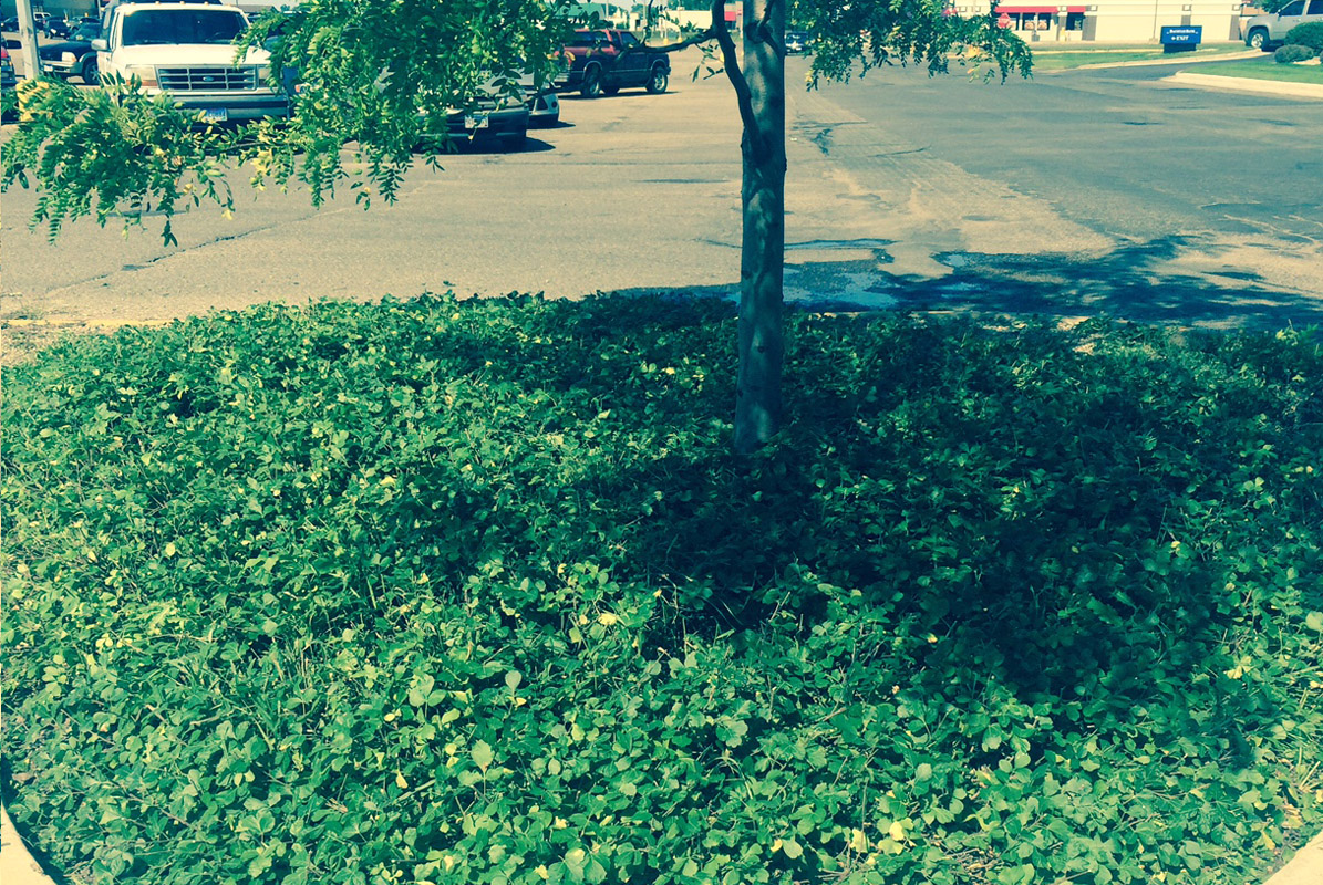 Before picture of landscaping done around trees in Watertown, SD
