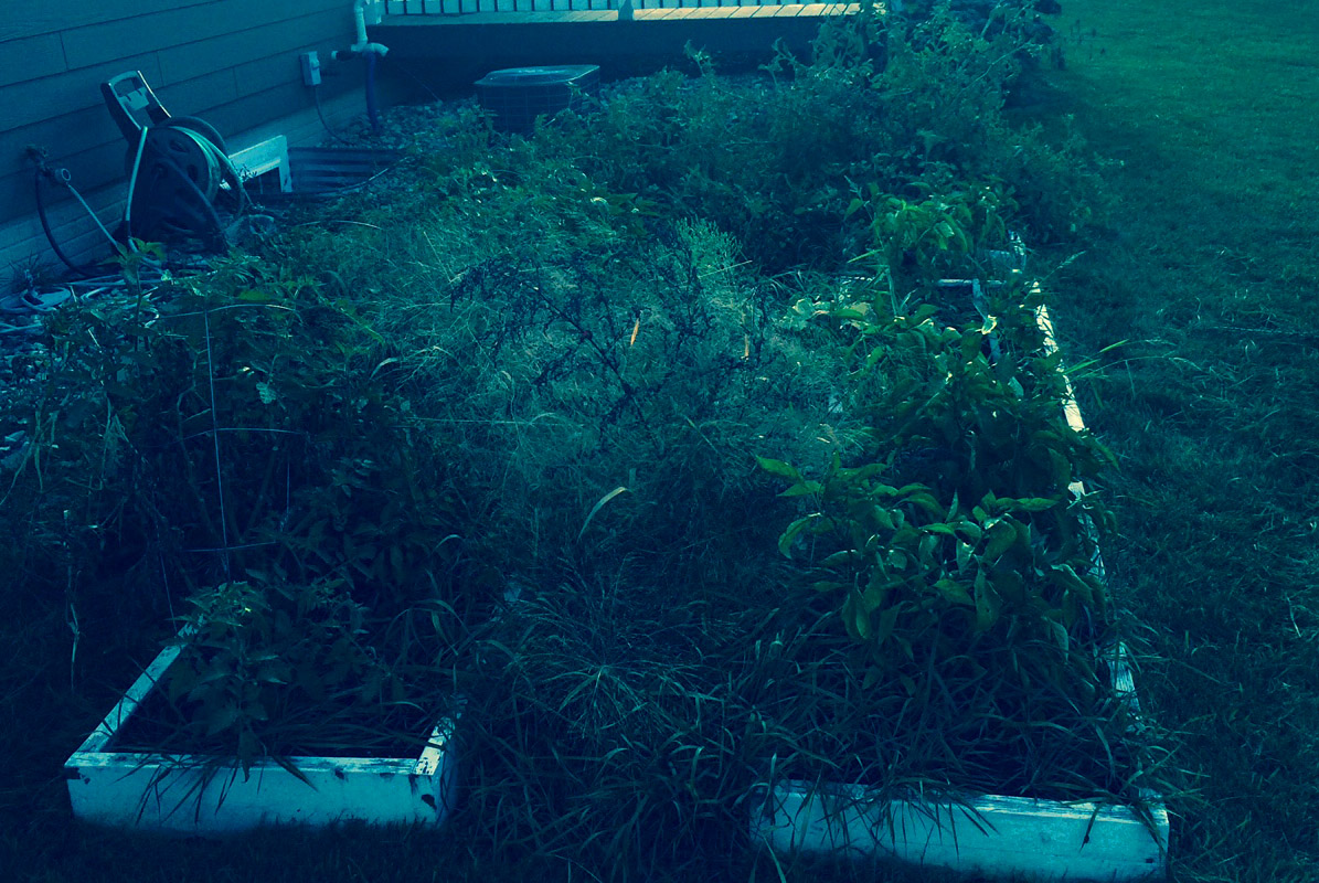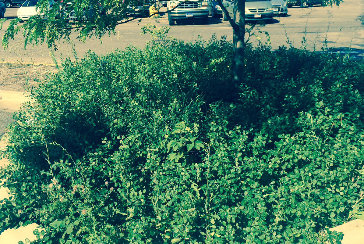 Before picture of weed/old plant removal for fall clean up in Watertown, SD